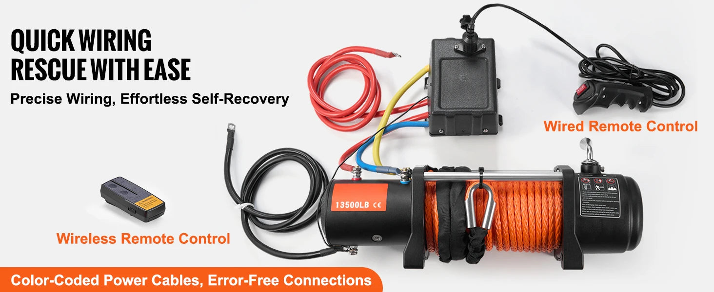 Peace of Mind Towing Performance: Tough weather? No problem! Our electric winch is built with an IP55 waterproof rating and a sleek black matte finish that boosts rust resistance and insulation. It's ready to tackle heavy rain, mud, or other harsh environments. Color-coded power cables and easy-to-follow instructions mean you'll set up without a hitch, so you can get back to enjoying the ride.