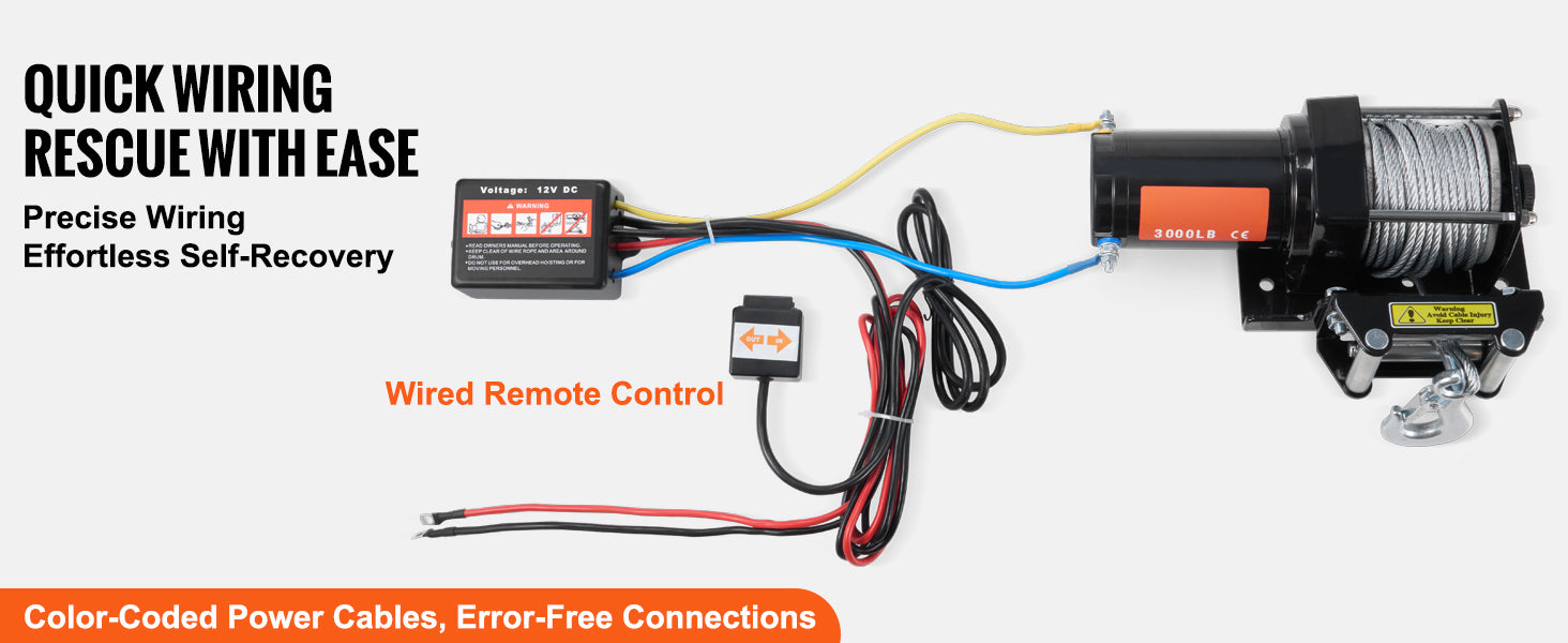 Easy Setup with Color-Coded Wiring:No more confusion when setting up! The SucceBuy electric winch comes with color-coded power cables for fast and straightforward connections, reducing setup time. With the included wired remote control, you can quickly hook everything up and start your recovery with minimal hassle.